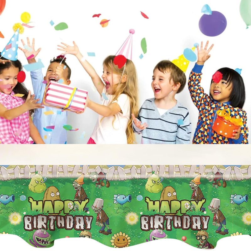 deenor 2Pcs Plants Zombies Tablecloth Disposable Tablecover Birthday Party Supplies and Decorations for Kid Boy Baby Shower Rectangle Tables 70"X42",2 Pack