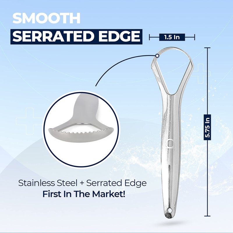 - ✅【FIRST IN THE MARKET】 - We Combined Two Best Selling Products: metal-flat tongue cleaner and serrated-plastic cleaner. You get both in one!