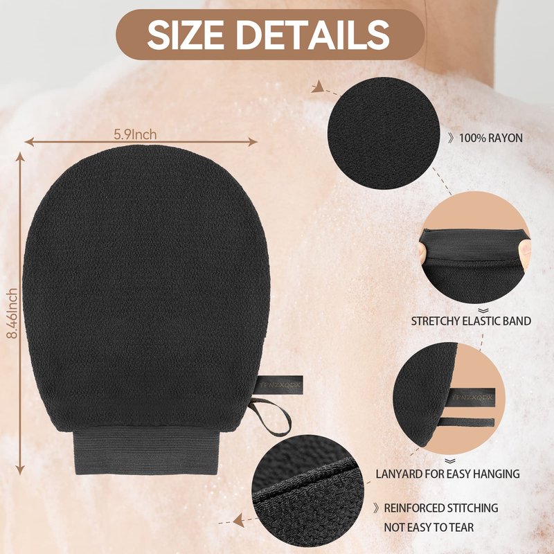 ·exfoliating glove body scrubber come with a black lanyard for easy hanging for quicker drying without worrying about them getting wet and smelly after the shower, and an elasticated elastic for a more body-friendly design so you don't have to worry about falling out during use