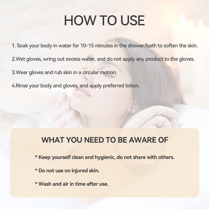 ·Shower Exfoliator for Home allows you to experience a spa experience at home, gently and deeply exfoliates dead skin and impurities, as well as dry, uneven skin caused by keratosis pilaris with just water, exfoliating with scrub gloves to boost the skin's surface blood flow to surface the hairs we get trapped under the skin, keeping the skin smooth and soft