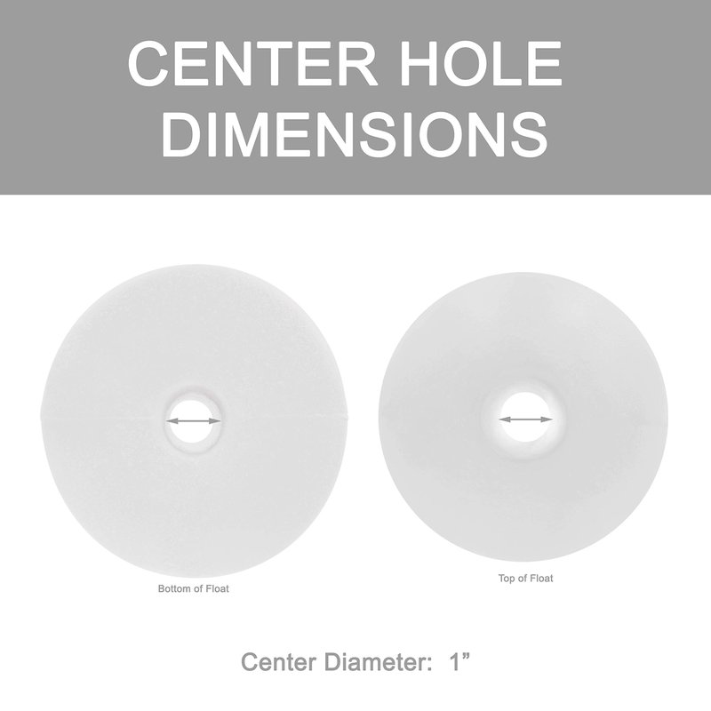 - WHITE FLOAT MEASUREMENT: 5 Inches x 11 Inches, 1" Center Hole