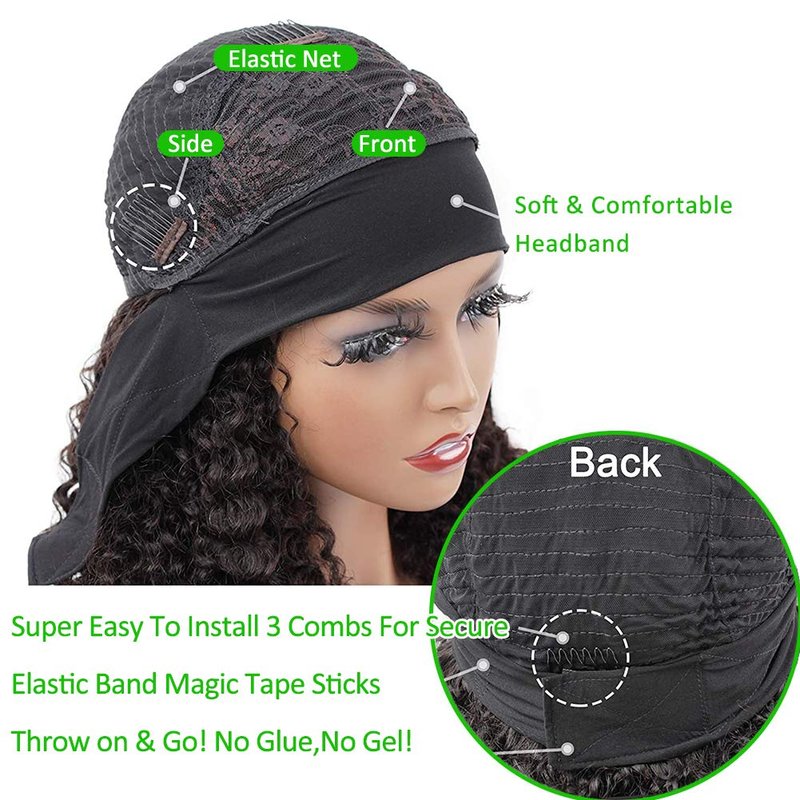 - Deep Wave Curly Headband Wig with Adjustable Straps and Combs, Easy to Install