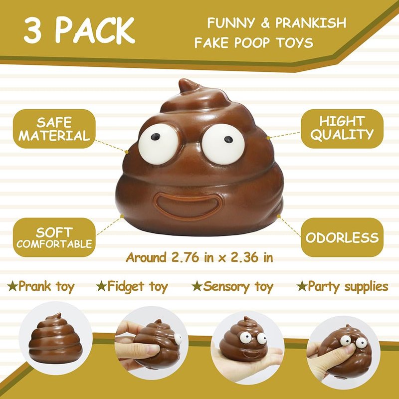 - 【Funny Squeeze Poop Fidget Ball Toy】You will receive a 3 pieces of bouncy poop balls toys , which is a stress toy for children, you can pull this bouncy toy to the extent you want, or rub it into the shape you like, bring yourself lots of fun. This realistic poop is super stretchy and is perfect for playing pranks on your friends and family. Have hours of novelty fun pranking your friends with this hilarious stretchy squeeze poop.