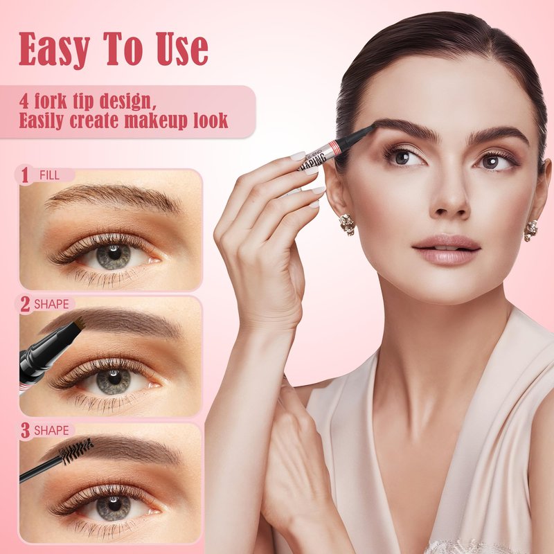 - [2-IN-1 BROW PEN]: Say goodbye to sparse eyebrows with magical brow pencil that has precise brush-tip to create tiny hair-like strokes, 4-fork-tip for filling in sparse areas and blend color. Gives you natural and realistic eyebrow at once.