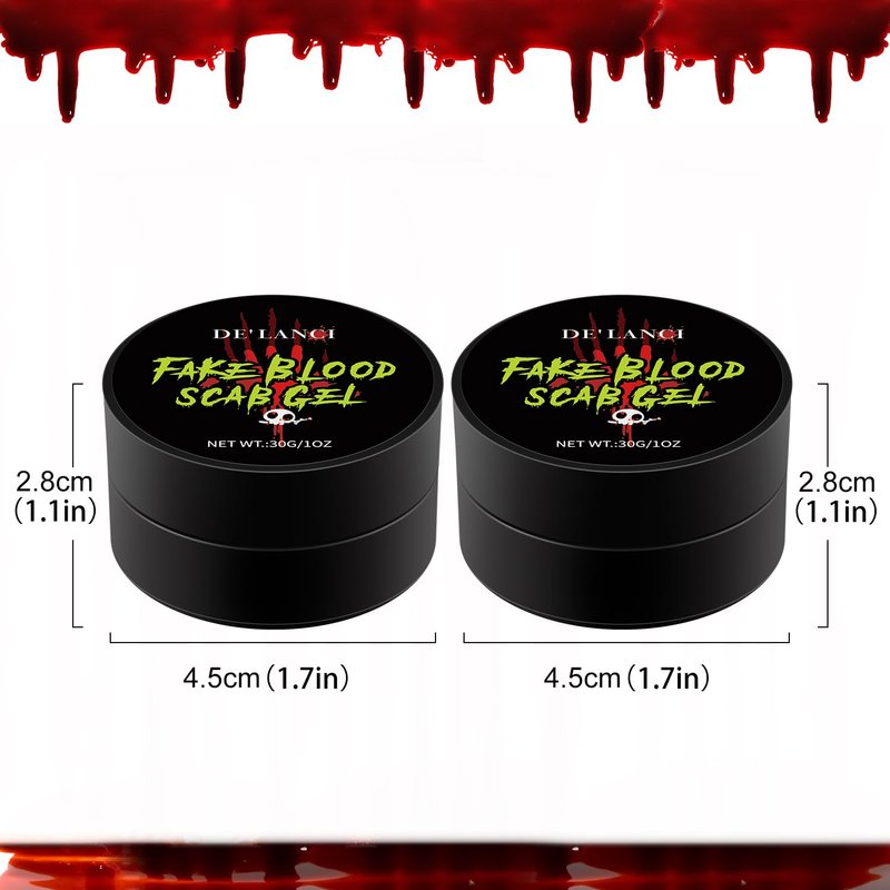 DE'LANCI Fake Blood Scab, 2 Pcs Coagulated Blood Gel Washable, Realistic Scar Blood Halloween SFX Makeup on the Face/Body, Prefect Zombie Vampire Monster Cosplay Stage Blood Clothes - 60g (2.12 oz)