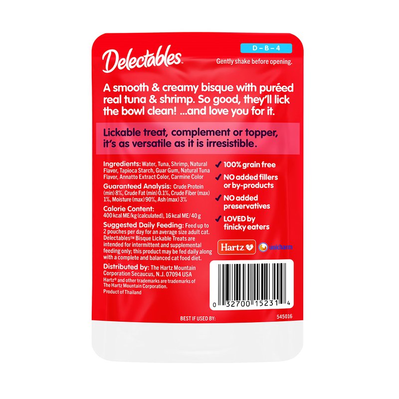 - TEXTURE VARIETY: Hartz Delectables Lickable Cat Treats are available in 6 irresistible textures in a wide variety of flavors – bisque, stew, savory broths, chowder, soft pate, and squeeze ups.
