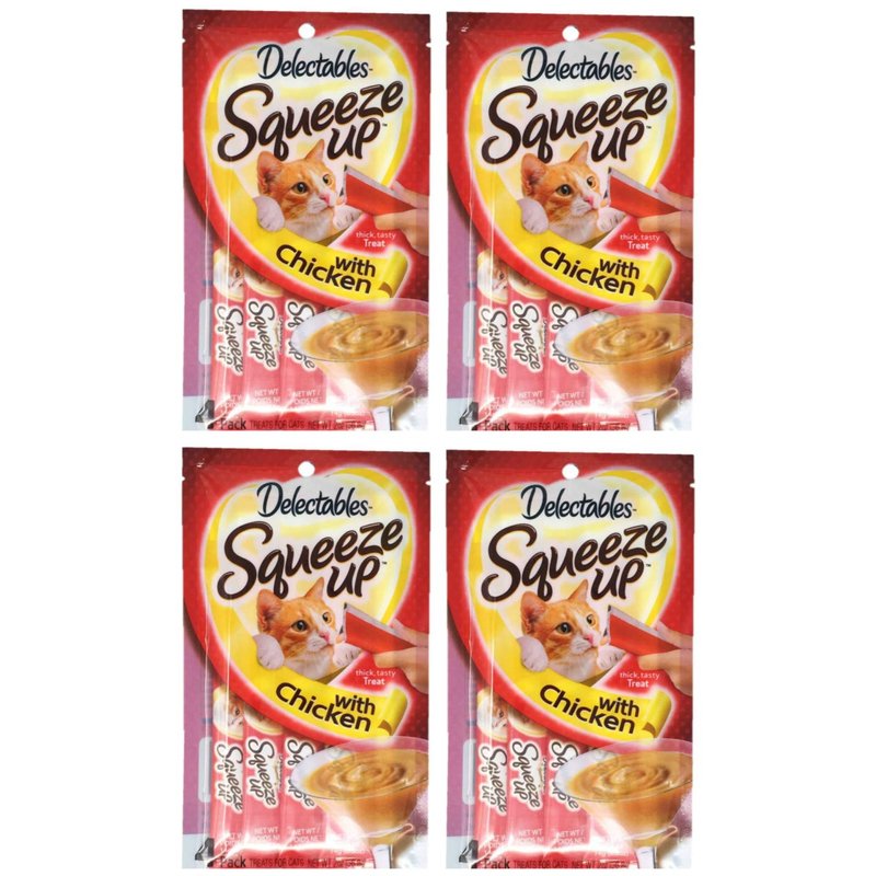 Delectables Squeeze Up Hartz Cat Treats Bundle of 4 Flavor Pouches, 2.0 oz Each (Chicken)