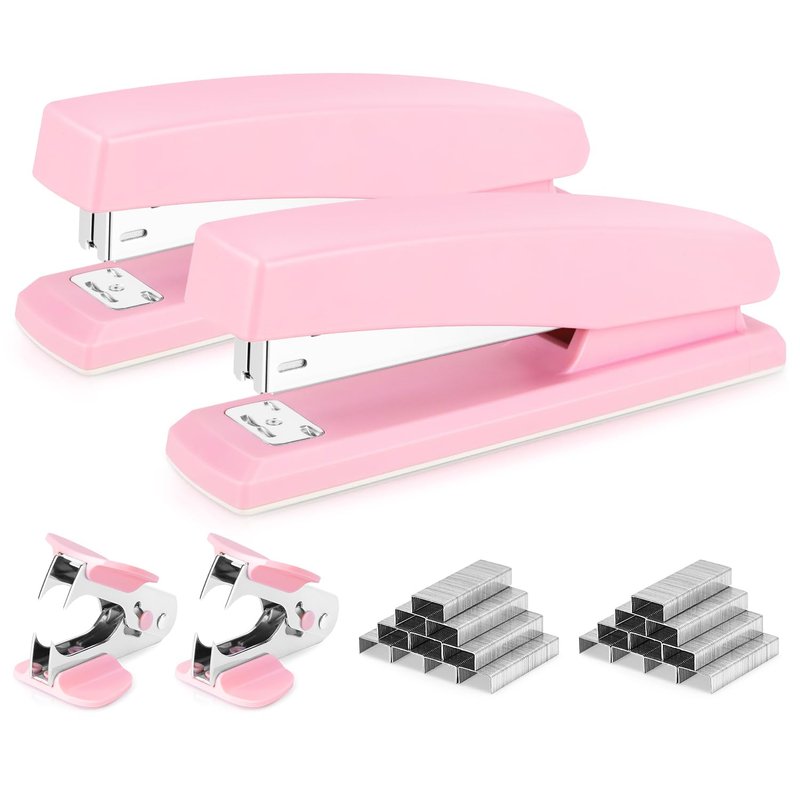 Deli Stapler, Desktop Stapler, 2 Pack, Office Stapler, 25 Sheet Capacity, Includes 2000 Staples and 2 Staple Removers, 2 Pack,Pink