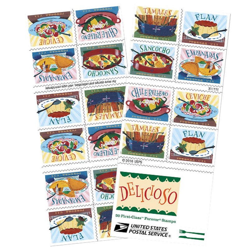 Delicioso Book of 20 USPS one-ounce rate Forever Postage Stamps Latin Food Traditional