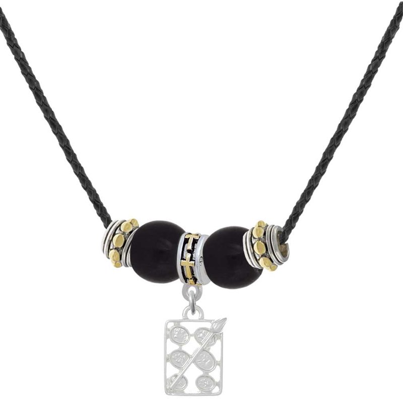 Silvertone 3-D Eye shadow Makeup Palette - Two-tone Cross Black Beaded Necklace. Charm size is approx. 0.7 x 0.48 x 0.12 inches (HxWxD) including loop. Black braided cord is 18 inches long with a 2 inch extender chain. Lobster Claw Clasp. Decorative pendant beads include black glass and antiqued silvertone cross pendant drops. PLEASE NOTE: Our products are not intended for children 14 years and younger.