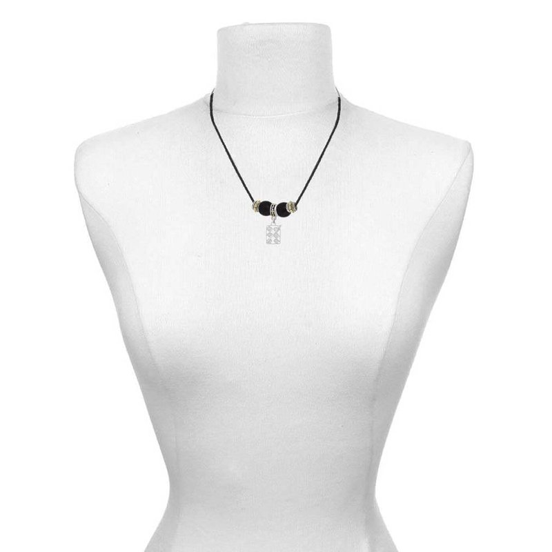 - Black braided cord is 18 inches long with a 2 inch extender chain.