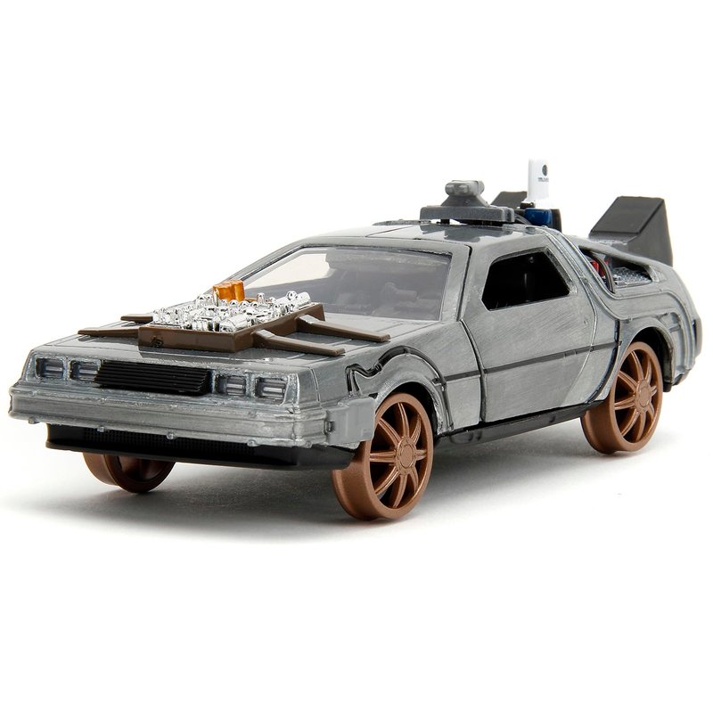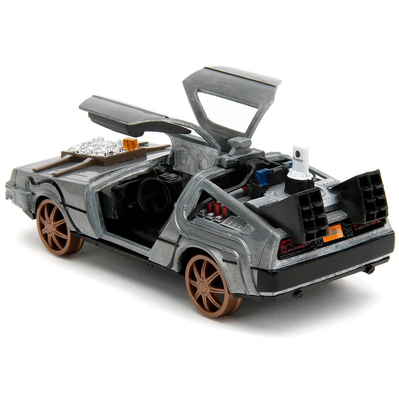 Delorean DMC (Time Machine) Brushed Metal Train Wheel Version Back to The Future Part III (1990) Movie Hollywood Rides Series 1/32 Diecast Model Car by Jada 34786