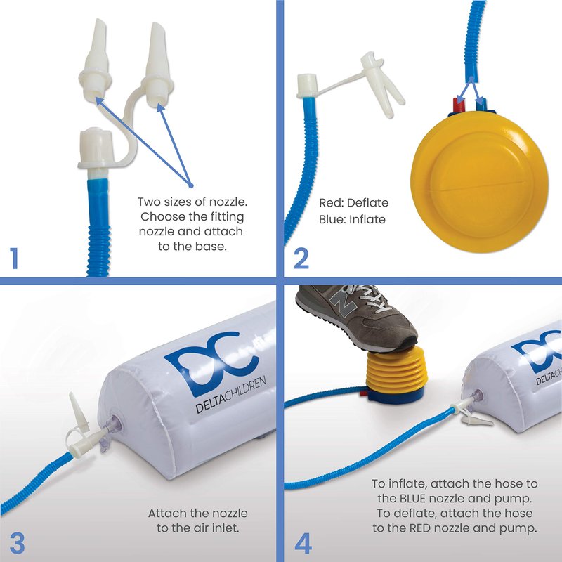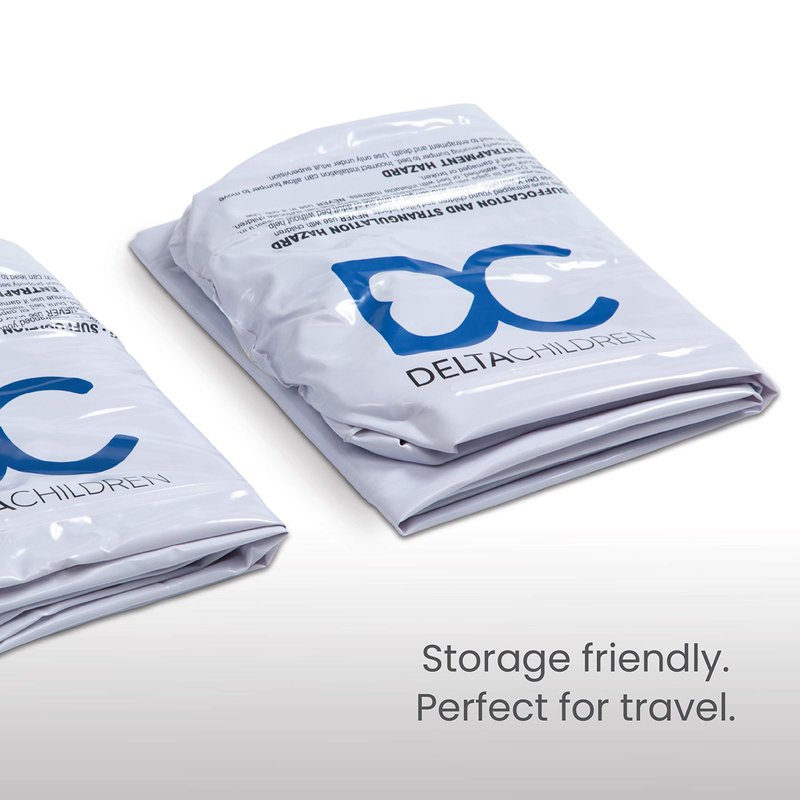 Make the transition from crib to big-kid bed easier than ever with this Pack of 2 Inflatable Bed Rails with Foot Pump by Delta Children! A safe and simple way to transition toddlers from their baby crib to a big bed, these inflatable bed rails prevent your child from falling or rolling off the bed by providing a gentle reminder they are near the edge. Great to use at home or while traveling, these bed rails feature a secure seal that prevents leaks and are easy to inflate thanks to the provided foot pump. Lightweight and compact, the small foot pump inflates the bedrails in under a minute. Slide the inflated rails under your fitted sheets, the non-slip strips ensure they stay in place throughout the night. Measuring 48"L x 7"W x 5"H, the compact and lightweight bedrails only weight 1.54 pounds. To save up space in your closet or luggage, deflate and roll this set of guard rails when not in use (it measures 6.3"L x 5.5"W x 1.2"D when folded up). Age recommendation: 24 months+. This Pack of 2 Inflatable Bed Rails with Foot Pump by Delta Children is everything you need for a peaceful night’s sleep.