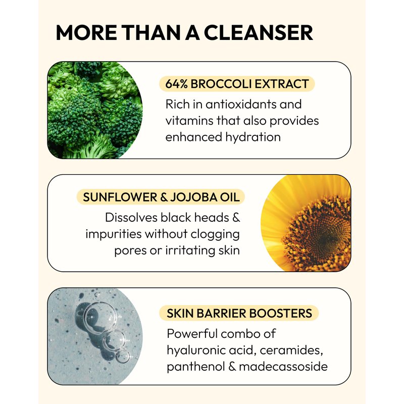 Discover the ultimate in skincare with our All Day Glow Creamy Milk Cleanser. This milk cleanser for face is expertly formulated to be the first step in your k beauty skincare routine, providing a gentle yet effective cleanse. Inspired by face wash Korean traditions, our Korean facial cleanser uses natural ingredients like sunflower seed oil and jojoba oil to remove dirt, excess oils, and makeup, ensuring a thorough cleanse every time. Our glow face wash not only cleanses but also hydrates deeply, making it the perfect hydrating cleanser for those with dry or sensitive skin. Infused with hyaluronic acid, panthenol, ceramide, and madecassoside, this cream cleanser provides long-lasting hydration, leaving your skin feeling soft and refreshed. Say goodbye to tight, dry skin with this face wash for dry skin that nourishes and maintains your skin’s natural moisture balance. Designed with sensitive skin in mind, our face wash sensitive skin formula is free from artificial colorants, sulfates, and fragrances. The low pH formula supports and respects your skin’s natural barrier, preventing irritation and ensuring a gentle cleansing experience. This makes our cleanser ideal for achieving the glass skin Korean skincare look, characterized by a smooth, clear, and radiant complexion. Our Korean cleanser is a staple in any double cleansing routine. Use it as your primary cleanser to remove impurities from deep within the pores, setting the stage for your skincare products to work more effectively. Whether you have oily, dry, or combination skin, this Korean cleanser adapts to your needs, providing a balanced and healthy complexion.