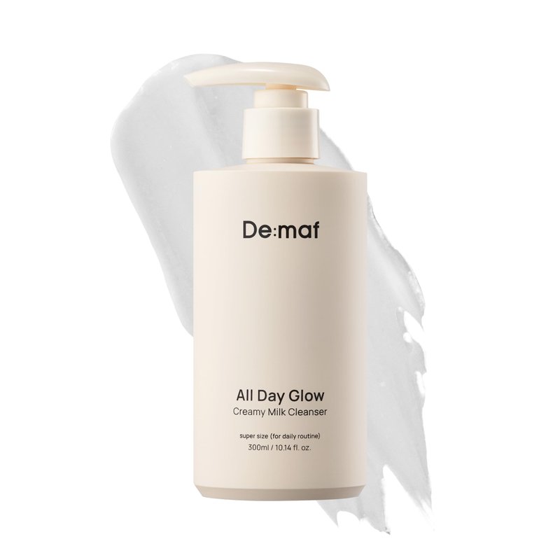 De:maf All Day Glow Creamy Milk Cleanser | Gentle Face Wash for Sensitive Skin, Korean Face Wash & Hydrating Facial Cleanser with Hyaluronic Acid, Ceramides, Panthenol (10.14 fl oz)
