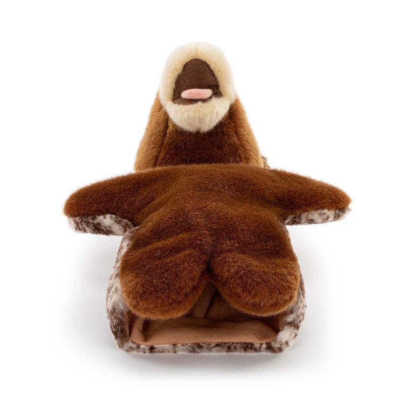 - Puppet is made of polyester fabric with soft, black and brown finish; To maintain huggable softness machine wash and air dry; You and your child can both go on adventures or create and act out mini scenes