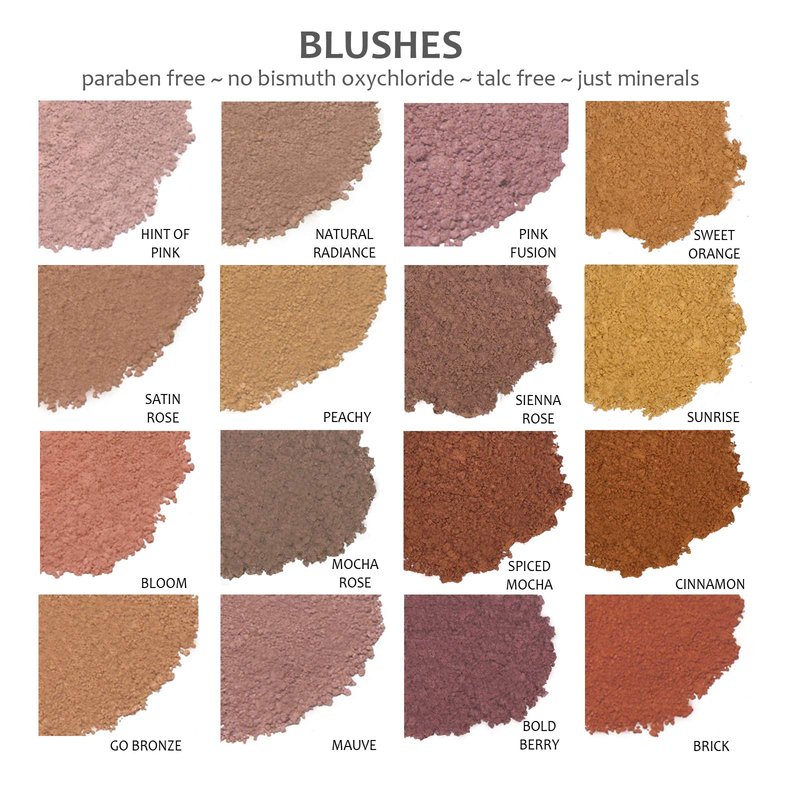 - Demure's Mineral Blush palette includes 12 shades that are made of all natural minerals. Easy to apply and goes on smooth. Naturally water resistant and lets your skin breathe.