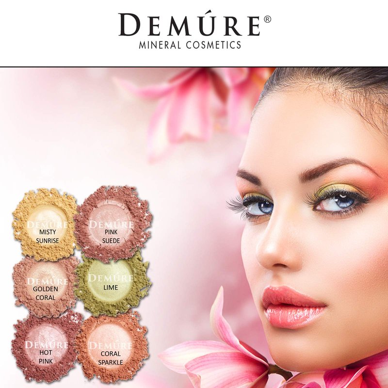 - Demure's Mineral Eye Shadow is lightweight, yet offers great color. Highly pigmented. Apply a thin layer for a light shade and additional layers for medium or bold color. Custom apply to make up your desired look.