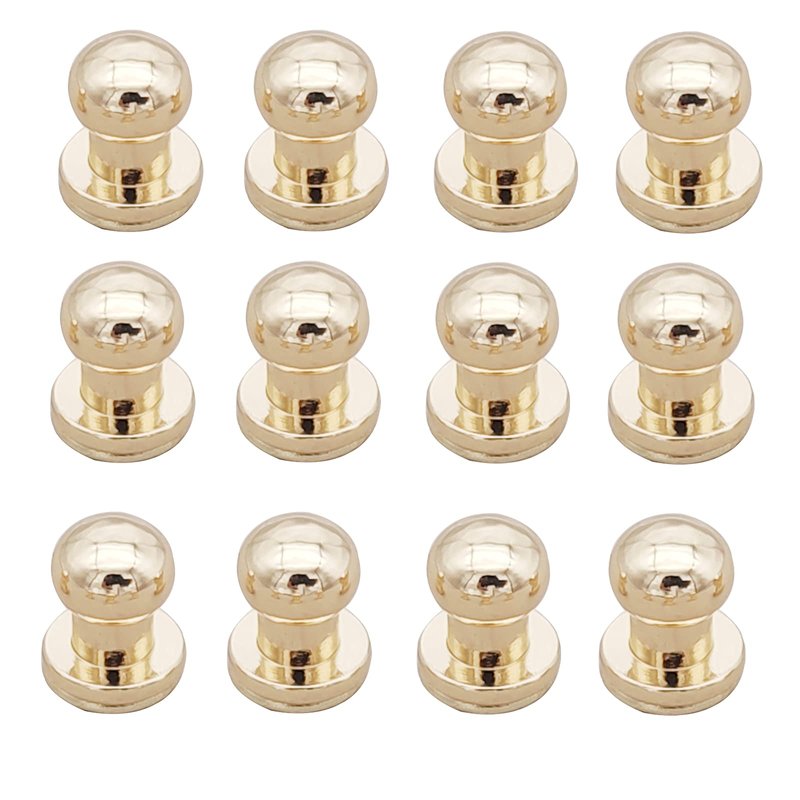 Denailey 12 Sets Solid Brass Round Head Button Stud Screw Leather Rivet Chicago Screws Button Rivets for Leather Craft Belt Wallet Handbag Repairs Decoration (Round Head Size 6mm, Shiny Light Gold)