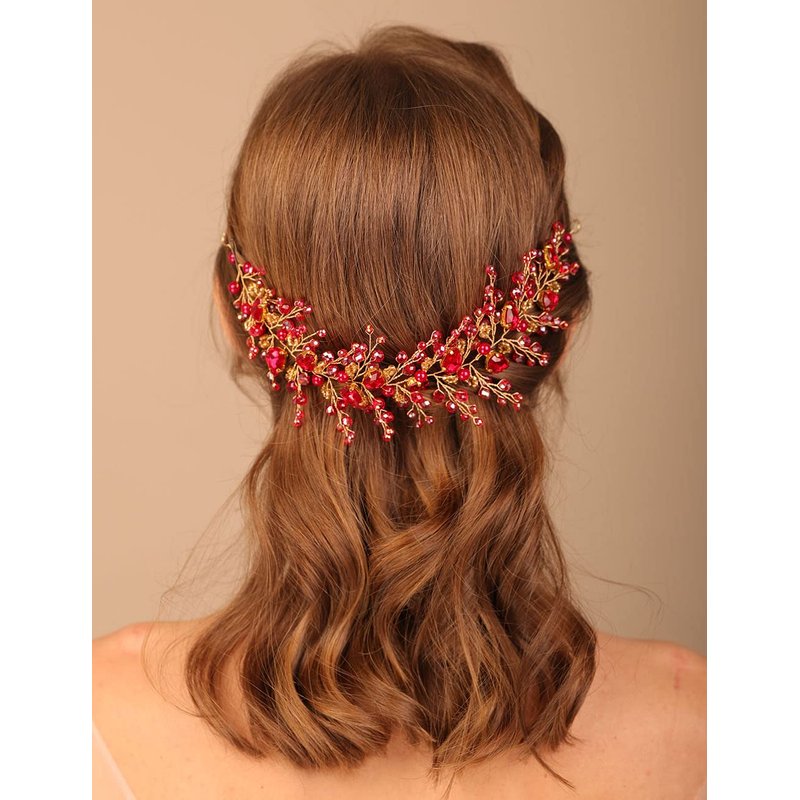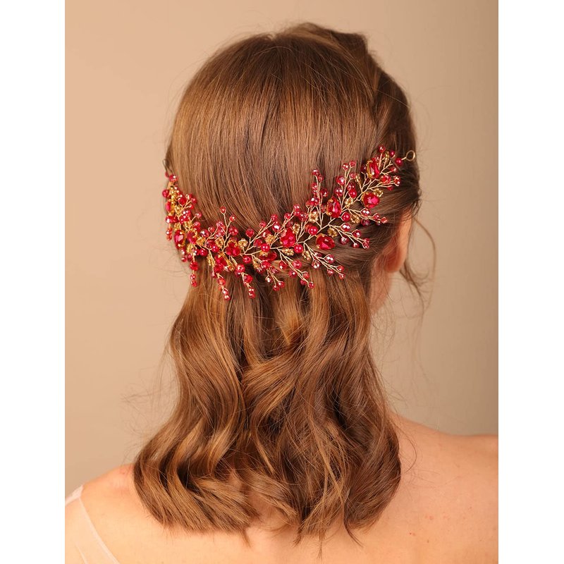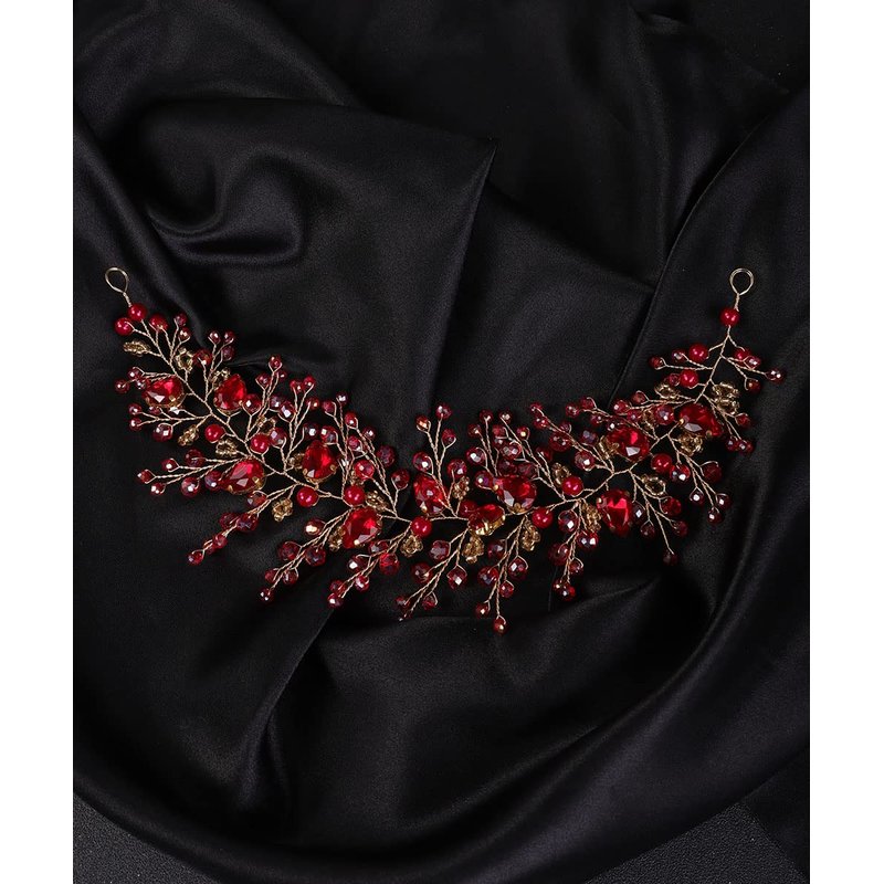 Denifery Red Wedding Headpiece Bridal Hair Vine Tiara with Red Rhinestones Boho Vines Romantic Headband Wedding Hair Accessory