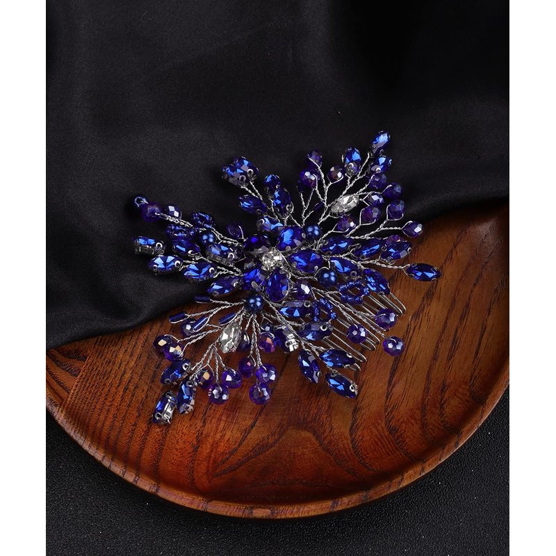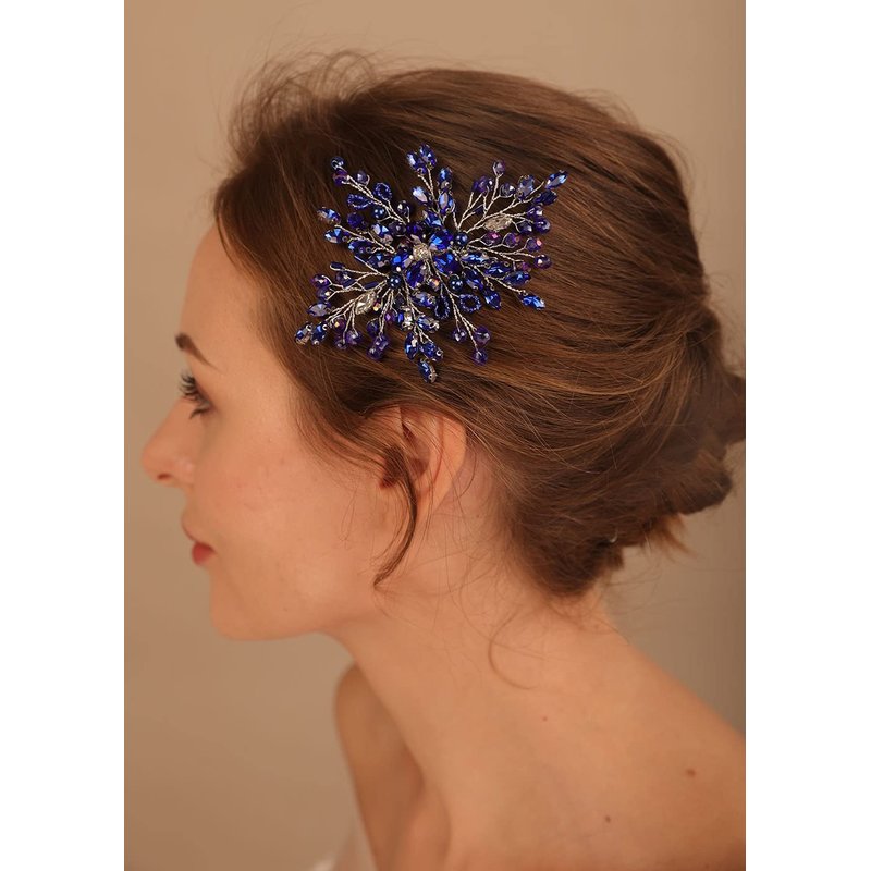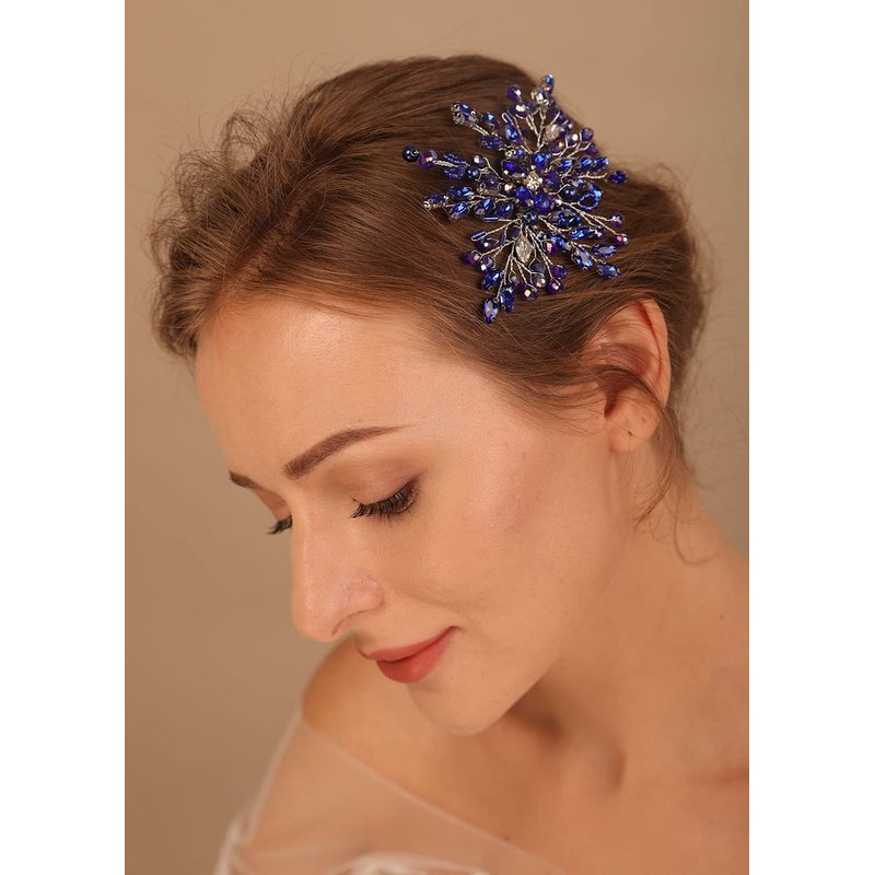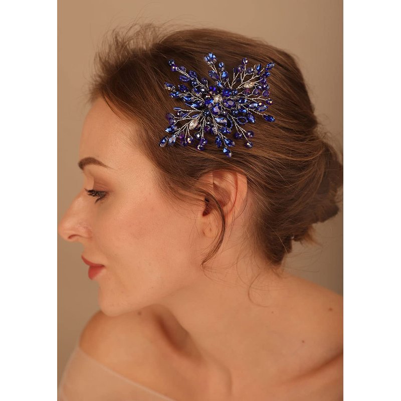 Denifery Women Sapphire Hair Comb Blue Crystal Rhinestones Bride Wedding Hair Accessories for Brides Crystal Bridal Hair Comb for Women and Girls (Style 3)