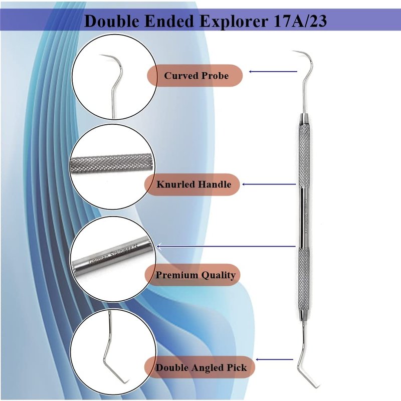 Dental Explorer Double Ended Probe 17A/23 for Professional Teeth Cleaning Calculus Plaque & Tartar Remover - Made of Stainless Steel for Oral Care with Knurled Handle, Double Ended Pick