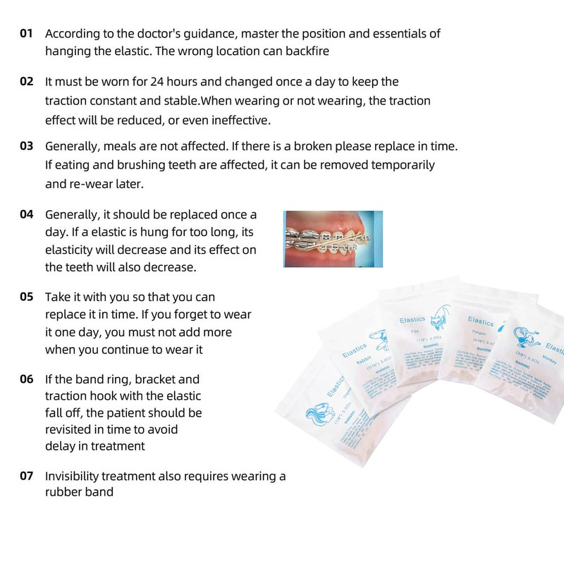 - During orthodontic treatment, elastics are sometimes worn to pull the teeth and adjust the jaw position. Usually, the elastic is worn by the patient as advised by the doctor and is mainly hung between the orthopedic devices (brackets, traction hooks).