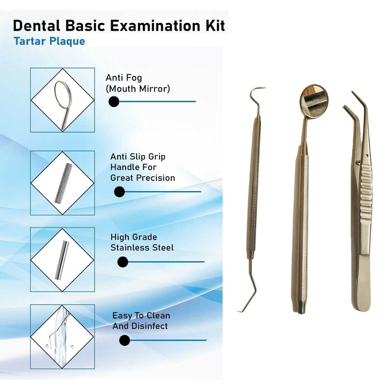 Dental Tools, Plaque Remover For Teeth Professional | Dental Hygiene Cleaning kit - Stainless Steel Tweezer With Free Mouth Mirror Floss Pick, Scaler,Tooth Scraper Oral Care Tool 3pcs (Silver)