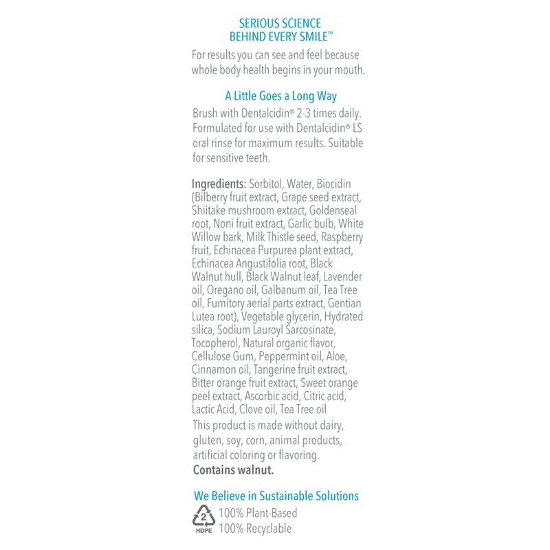 - Combine Dentalcidin Oral & Gum Care Products - Brush with Dentalcidin 2-3 times daily and combine with Dentalcidin Liposomal Rinse for further oral microbiome support. This toothpaste for sensitive teeth and mouth wash contains no sodium lauryl sulfate, artificial colors or flavors.