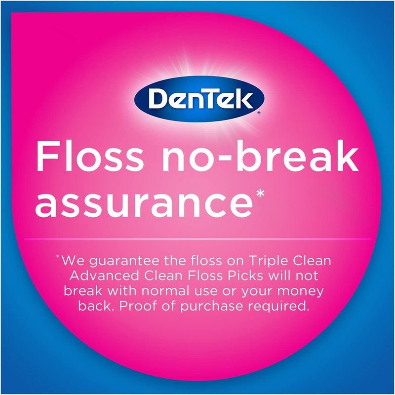 - Floss no-break assurance – DenTek assures the floss on DenTek Triple Clean Advanced Clean Floss Picks will not break with normal use