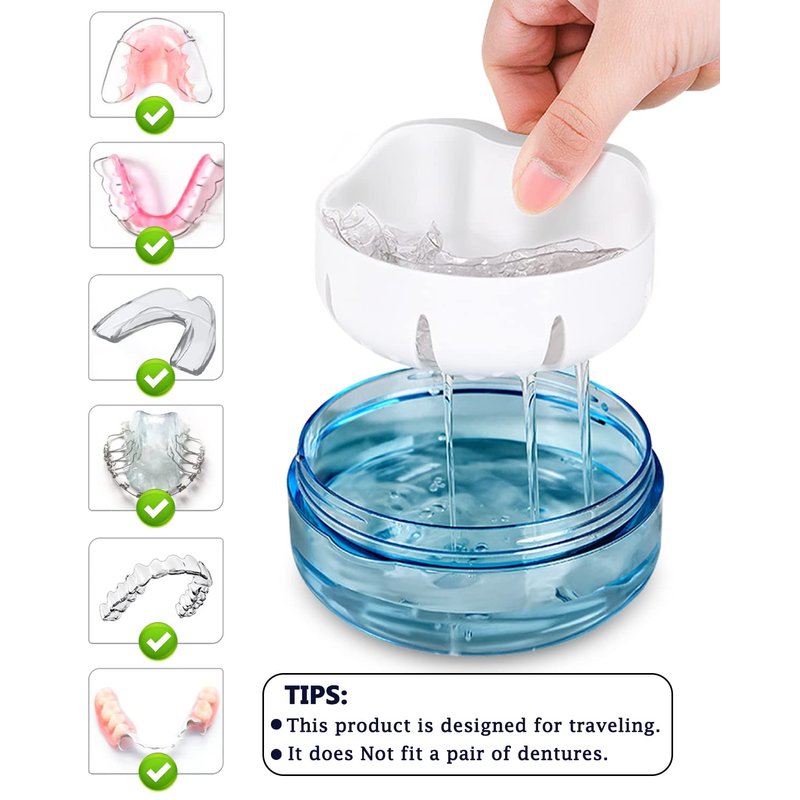 - 【SERVICE】We notice you kindly that please clean your denture box regularly. Putting it in a dry and clean place to ensure proper cleaning of your night guard, dentures, and retainers. If you receive a broken or leaking brace box, please contact us as soon as possible, we will replace you with a new one immediately.