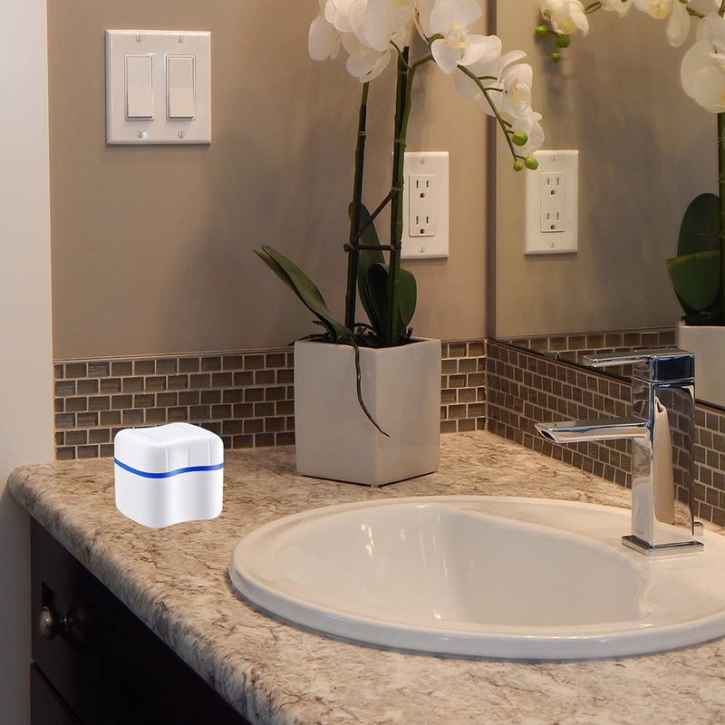 - Each Denture Holder Is With Drain Tray, A Rinsing Basket, There Is A Small Holder On The Rinsing Basket, Easy To Pick Up The Basket
