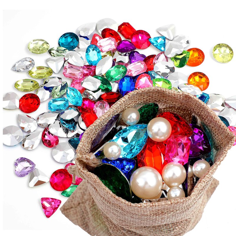 - What's included in this set: There are 80pcs fake gems and 35pcs pearl beads packed into a sack bag. Size arrange: Please review the size shows in the pic