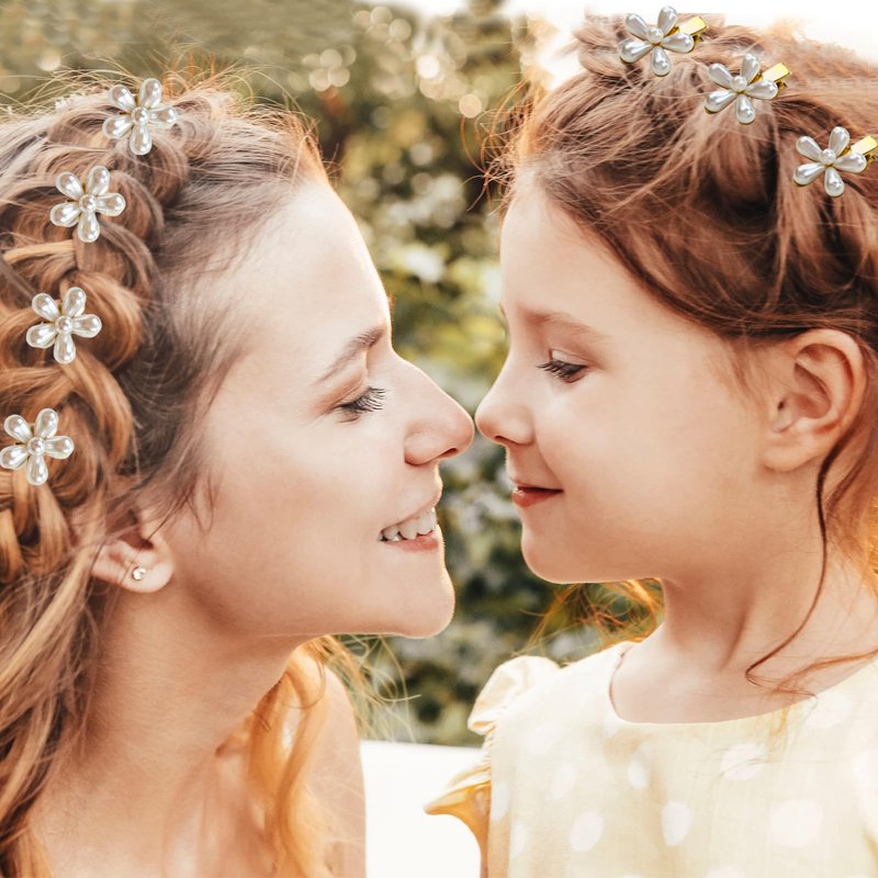 20 pcs single side + double side mini flower hair clips with faux pearl