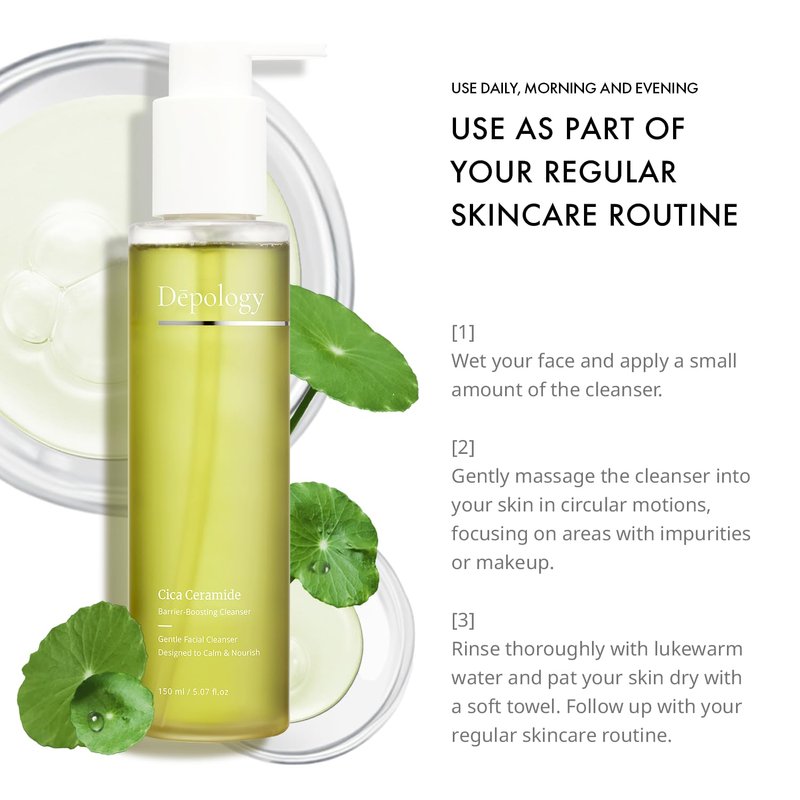 - [ How to Use ]: Wet your face with lukewarm water and apply a small amount of the cleanser, gently massage the cleanser into your skin in circular motions, focusing on areas with impurities or makeup, rinse thoroughly with lukewarm water and pat your skin dry with a soft towel.