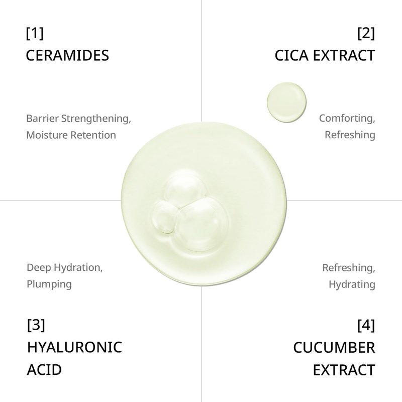 - [ Our Unique Formulation ]: The Cica Ceramide Cleanser is crafted with a distinctive blend of ingredients.This formulation combines the strengthening power of Ceramides, the relaxing effect of Cica Extract, the hydrating properties of Hyaluronic Acid, and the refreshing touch of Cucumber Extract.