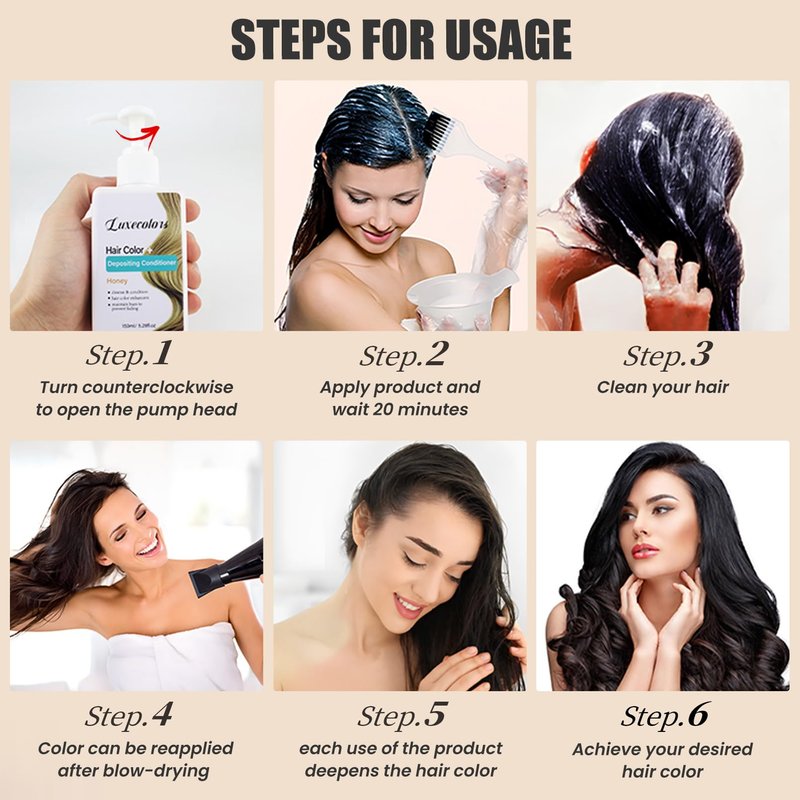 - Easy To Use: After washing your hair, wipe it until it is half dry, apply proper amount of hair color + depositing conditioner to your hair, leave for 15-20 minutes, and rinse thoroughly