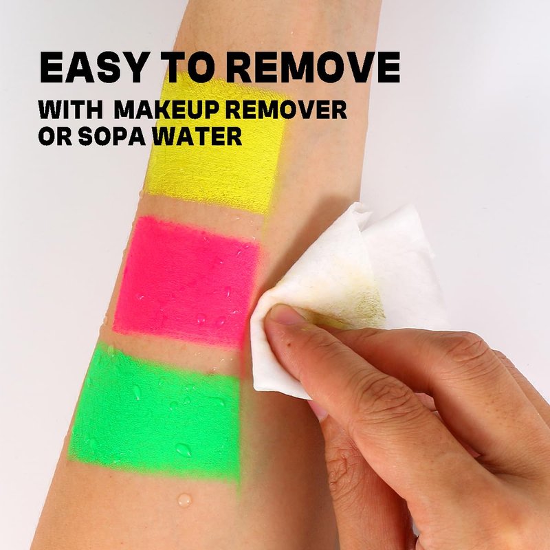- Professional Quality: Depvision creamy face paint is oil based,high pigment,The cream paint applies smoothly,blends evenly.Net weight: 30g.Glow under UV light.