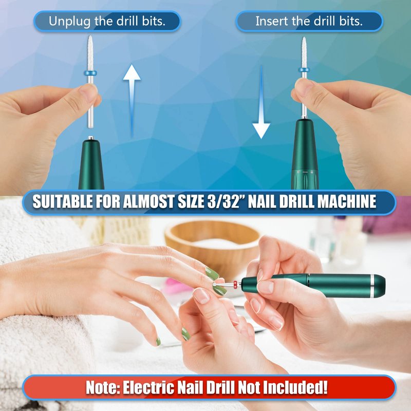 - Versatile: The Nail Drill Bits Set consists of 4 different style combinations, 3/32" (2.35mm) size fits most nail drill machines on the market. Can sharpen, grind, neaten, carve, smoothen, polish, and reshape gel and acrylic nails very quickly and efficiently