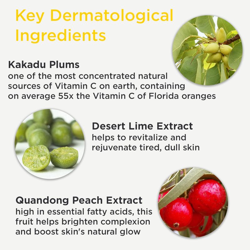 - Quandong Peach Extract - High in essential fatty acids, this fruit helps brighten complexion and boost skin’s natural glow.