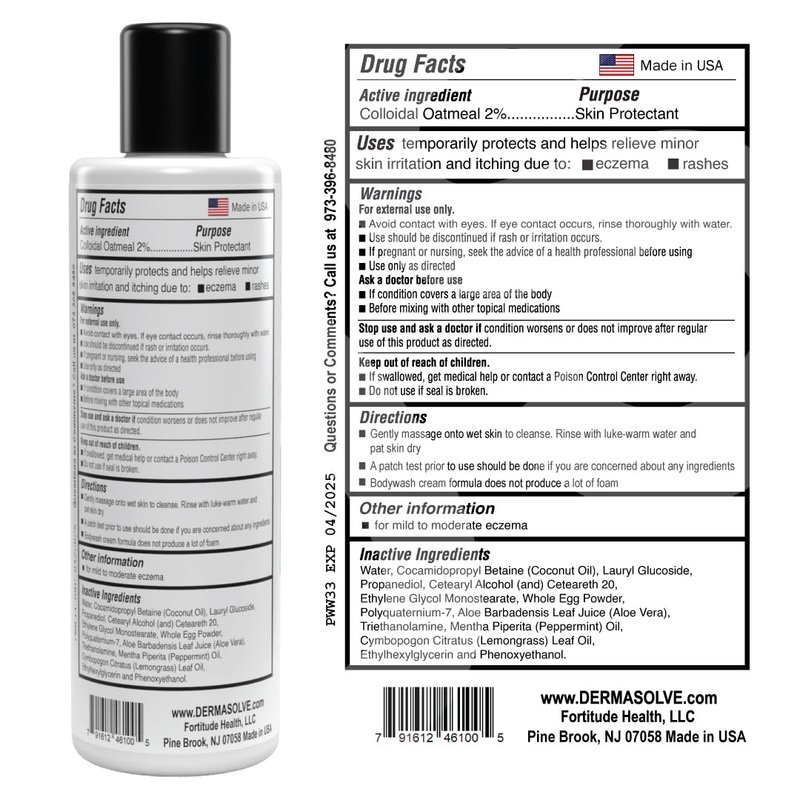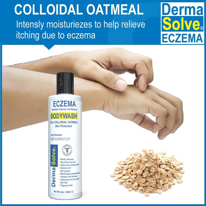- Formulated with Colloidal Oatmeal to help protect and prevent dry itchy skin. Dermasolve Eczema Relief Bodywash will hydrate, and reduce the appearance of redness so you can experience smooth calm skin again.