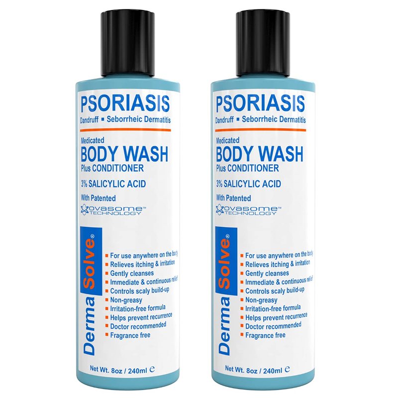 Dermasolve Medicated Psoriasis Body Wash - 2-Pack (8.0 oz each) - Proven to Provide Relief from Psoriasis, Eczema & Seborrheic Dermatitis, Doctor Recommended for Dry, Itchy, Red, Flaky, Scaly Skin