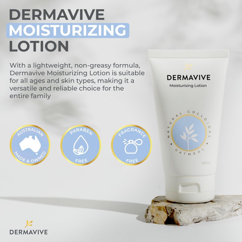 Dermavive Moisturising Lotion, Hydrating Body Lotion, pH Balanced Nourishing Moisturizer, Non-Greasy Moisturizing Lotion with Natural Colloidal Oatmeal for Dry Skin, 120ml (4.05 fl oz)