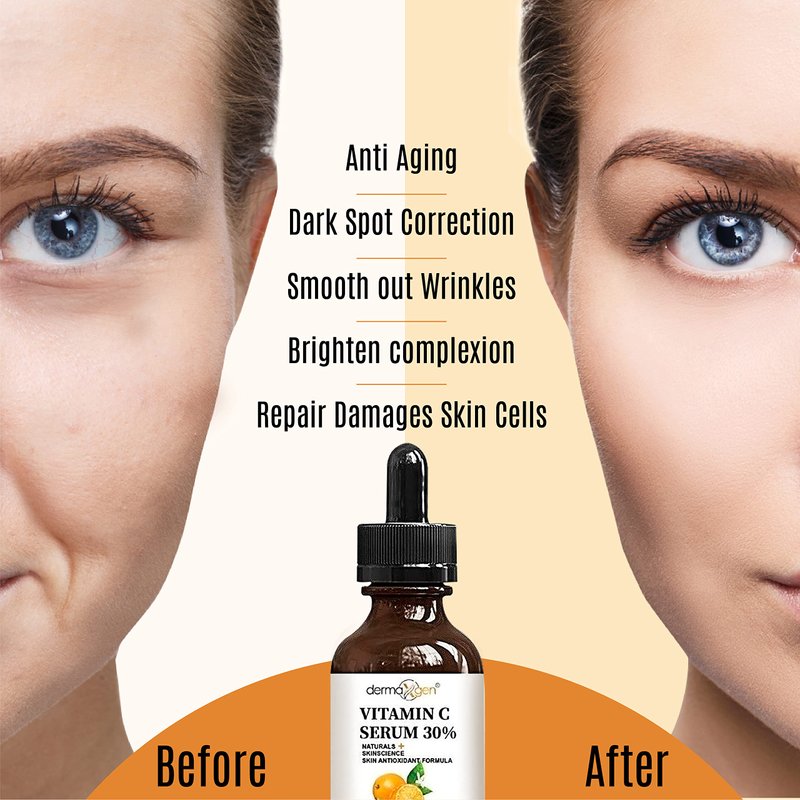 - SKIN SCIENCE: VC 30% serum for Revive, Tighter & Smoother Skin & Known for natural anti-wrinkle & anti-aging solution. Vitamin C Serum has advanced glowing formula + Anti-aging face features for beautiful soft & supple skin.The natural extraction of VC is a necessary element of collagen fusion. Accelerates the creation of collagen, repairs the connection between cells & improves the skin elasticity & fitness of the skin. With higher VC content, the anti-aging repair effect will double