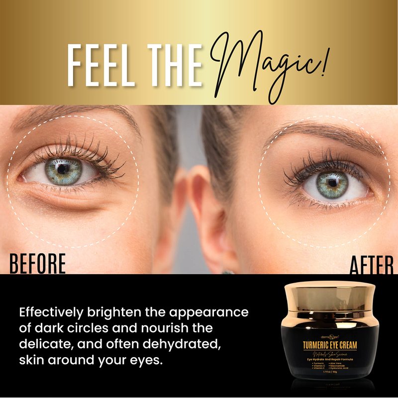 - Powerful Ingredients: Our under-eye cream is enriched with turmeric and vitamin C, two of the most powerful brightening ingredients that work together to illuminate the area and provide an antioxidant boost that helps the skin fight free radicals.