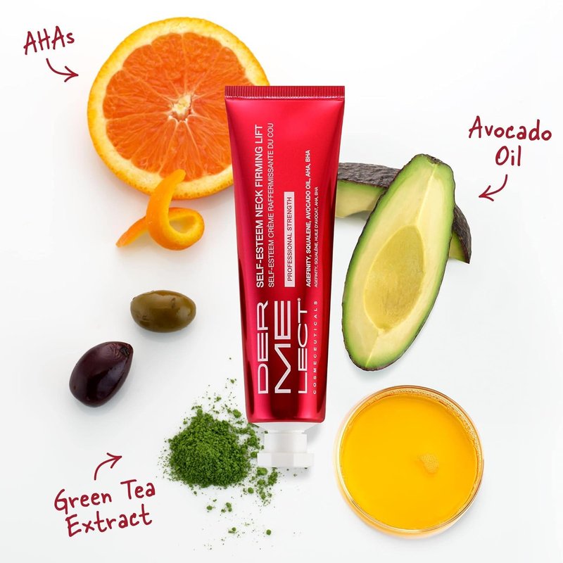 Dermelect Self-Esteem Neck Firming Lift Professional for Neck - Anti Aging Cream with Agefinity, Squalene, Green Tea Toning Hydrating Firming Treatment for Crepey Sagging Skin, Tech Neck 2 oz