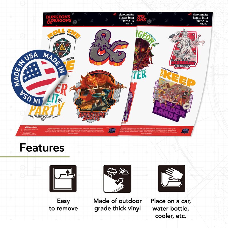 Are you looking for a high-quality licensed product that’s the perfect way to show your pride for Dungeon and Dragons? Our stickers and decals can be used in numerous ways! Place them on a car, on a laptop or computer, on a water bottle, or any other smooth surface. Whether you want a stylish decoration or a gift for someone special in your life, we’re here to make sure you get nothing but the very best. We offer other quality licensed products, including lanyards, keychains, license plate frames, and flags.