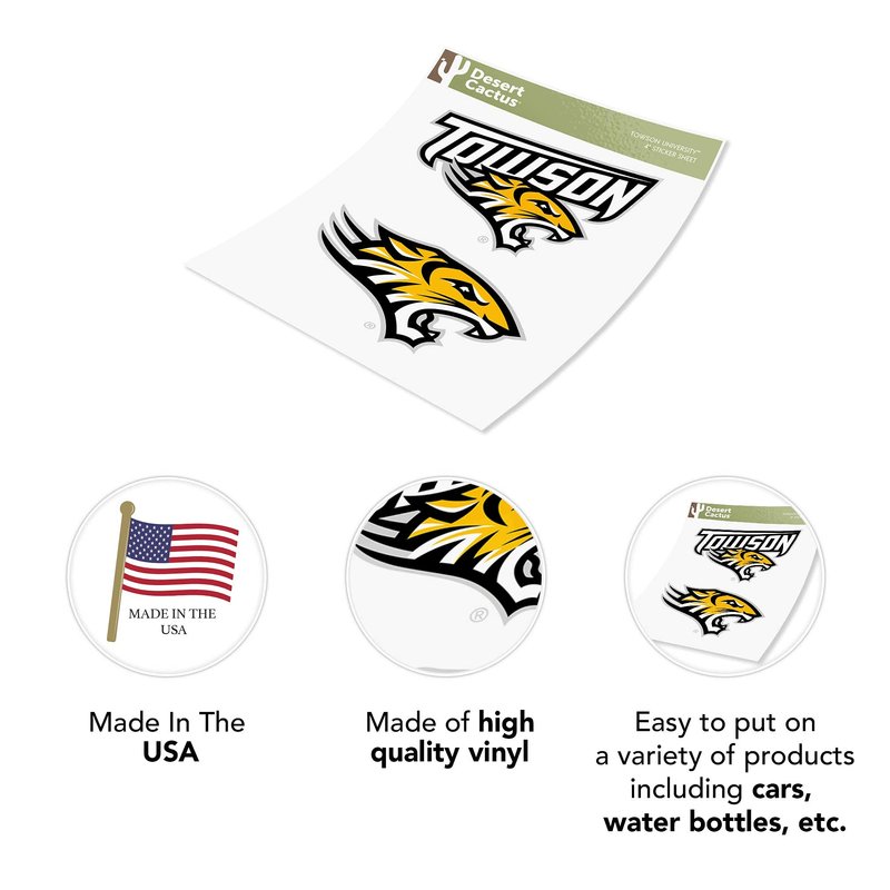 Desert Cactus Towson University Stickers TU Tigers Vinyl Decal Laptop Water Bottle Car Scrapbook11.34x8.94 (4 Inch Set V1)