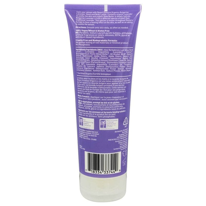 Desert essence organics bulgarian lavender calming hand and body lotion can be used daily to moisturize hands and body. Made with organic bulgarian lavender, this lotion will soothe your skin and calm your senses. We also use fair trade organic shea butter to deeply hydrate your skin. Our lotion is 100% vegan, cruelty-free, biodegradable, and free of gluten and wheat. It is also free of parabens, silicone, and artificial fragrances and colors. Each tube contains 8 fl oz of desert essence organics bulgarian lavender calming hand and body lotion. See label for warnings.