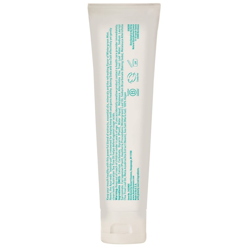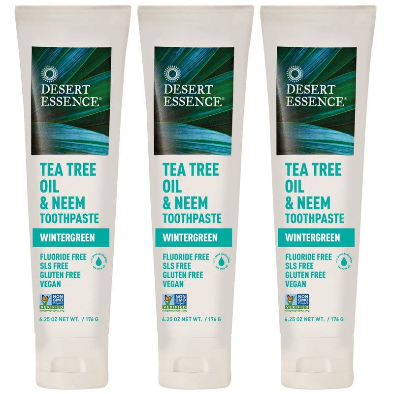 Desert Essence Tea Tree Oil & Neem Toothpaste - Essential Oil of Wintergreen, Baking Soda & Sea Salt - Promotes Healthy Mouth, Plaque & Cavity Prevention - Fluoride-Free, SLS Free, Vegan - 6.25oz